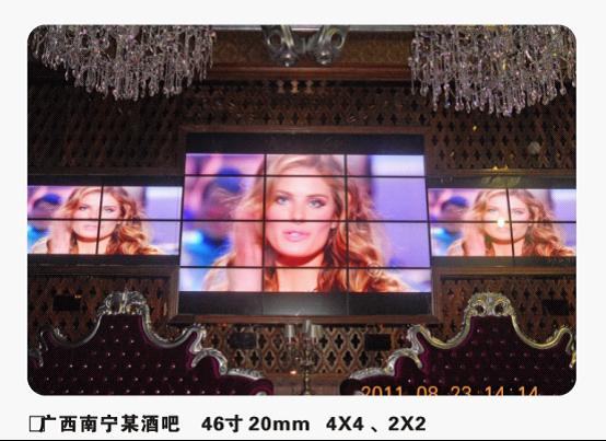 廣西南寧某酒吧采用彩晨科技46寸雙邊物理拼縫20mm液晶拼接屏 4x4一套和液晶拼接屏 2x2兩套獨(dú)特拼接