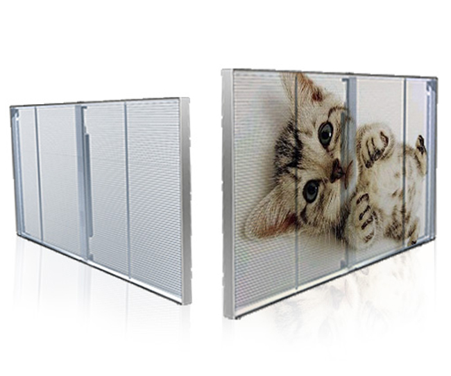 通透率可達(dá)95%,透光,透風(fēng),不影響采光和視線;無鋼結(jié)構(gòu),重量輕,安裝快捷方便,插電即用,顯示屏模塊化設(shè)計(jì),易于安裝固定在支架上,標(biāo)準(zhǔn)尺寸的模組可以快速被拼裝成大屏幕,所有電源和接收卡都隱藏在模組里,電源連接起來更容易。