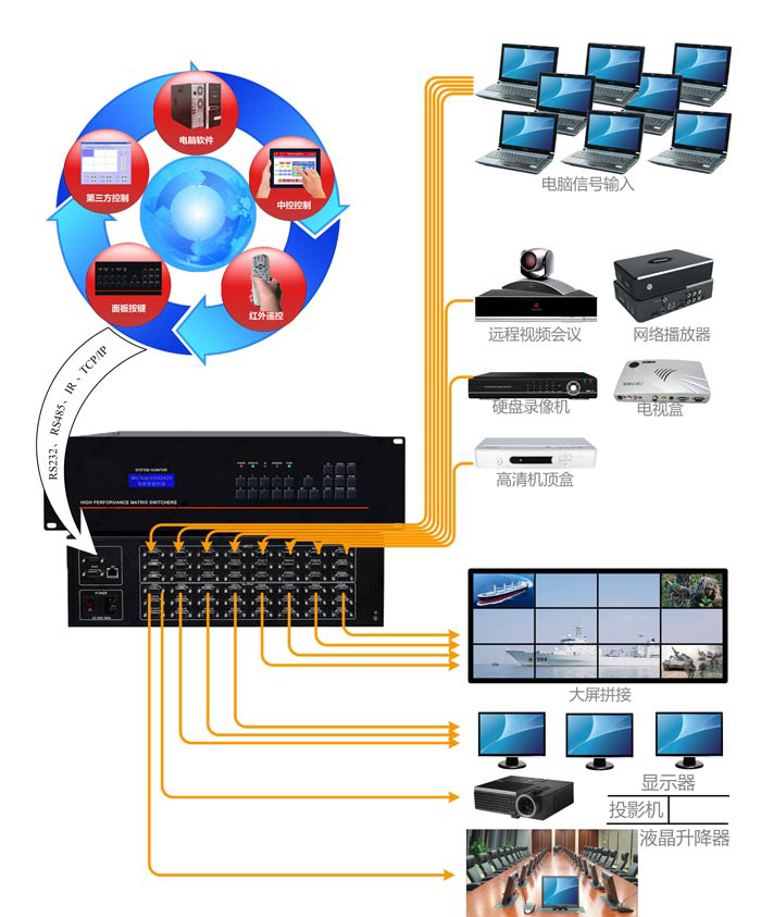 通過串和電腦及智能中控系統(tǒng)實現(xiàn)通訊控制。