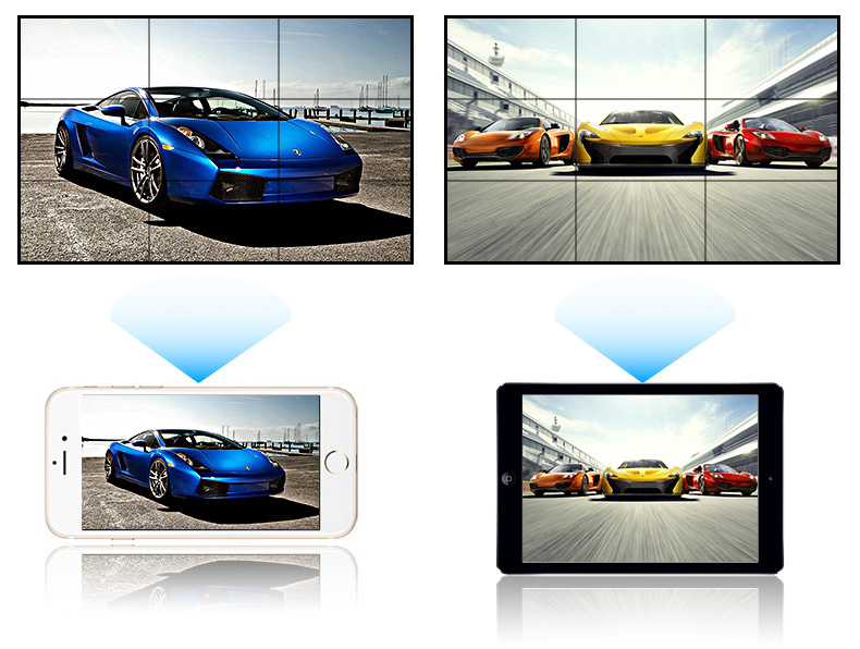 畫面可通過手機(jī),ipad等,移動設(shè)備投放到屏幕上同步顯示